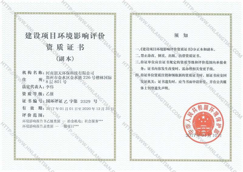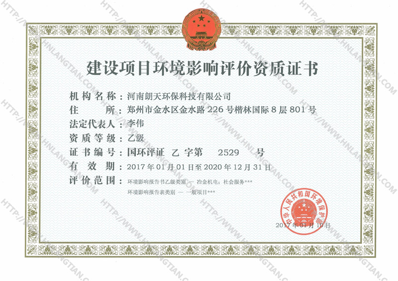 河南朗天環(huán)保科技有限公司,原為河南農(nóng)大風(fēng)景園林規(guī)劃設(shè)計(jì)院環(huán)境研究所,于2005年6月30日正式取得由國(guó)家環(huán)境保護(hù)部頒發(fā)的環(huán)境影響評(píng)價(jià)乙級(jí)資質(zhì)證書(shū)(國(guó)環(huán)評(píng)乙字第2529號(hào)),注冊(cè)地址鄭州市金水區(qū)金水路226號(hào)楷林國(guó)際8層801號(hào),注冊(cè)資金500萬(wàn)元。主要從事環(huán)境影響評(píng)價(jià)、環(huán)保技術(shù)咨詢、土壤環(huán)境調(diào)查、第三方環(huán)境監(jiān)查及督導(dǎo)、竣工環(huán)境保護(hù)驗(yàn)收、突發(fā)環(huán)境事件應(yīng)急預(yù)案、區(qū)域環(huán)境現(xiàn)狀評(píng)估、排污許可申報(bào)、清潔生產(chǎn)審核、環(huán)境工程治理、空氣質(zhì)量精細(xì)化管控(專(zhuān)家組)等。公司在“以質(zhì)量求生存、以信譽(yù)求發(fā)展”經(jīng)營(yíng)理念的指導(dǎo)下,秉承改善人類(lèi)環(huán)境、實(shí)現(xiàn)最佳經(jīng)濟(jì)效益與環(huán)境效益之宗旨,倡導(dǎo)科技創(chuàng)新之精神,依托雄厚的技術(shù)力量,致力于環(huán)境影響評(píng)價(jià)工作及環(huán)境工程技術(shù)咨詢的科研工作。
